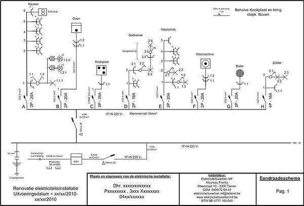 Deze onderstaande schema's (eendraad- en situatieschemas) zijn getekend met mijn eigen persoonlijke software.
